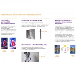 Capta la atención de forma inmediata con el monitor profesional de alto brillo Reactiva. Diseñado para dominar en los escaparates más exigentes, ofrece una potencia lumínica de 3000 nits y un panel especial que evita las manchas negras por calor hasta 110ºC. Disponible con un potente Player Android o un PC Intel® i5 integrado, es la herramienta definitiva para una comunicación visual de máximo impacto, 24/7.
